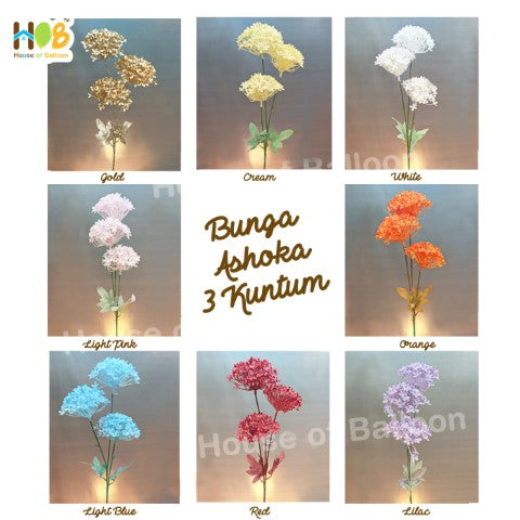 Bunga Ashoka Plastik Artificial Flower Dekorasi Pom Pom 3 Kuntum