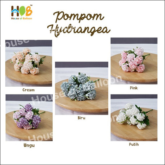 Bunga Artificial Pom Pom Hydrangea Flower 9 Kuncup