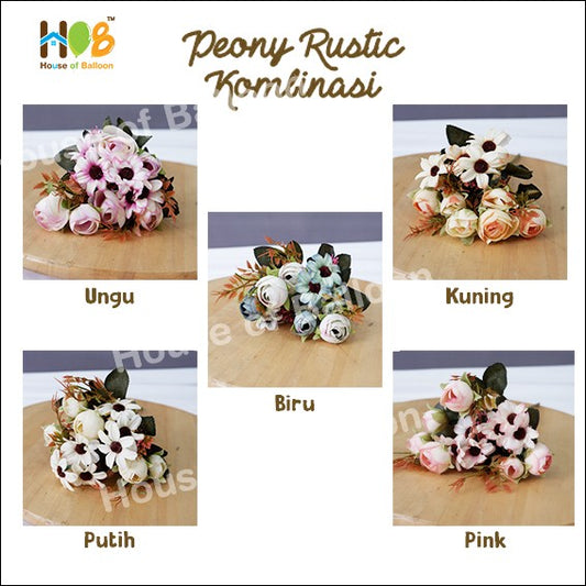 Bunga Artificial Peony Kombinasi Anggrek - Rustic Vintage