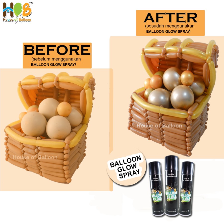 Super Balloon Glow adalah sejenis solusi cair yang dapat disemprotkan ke balon untuk menjaga dan menambah kilap balon. Formula dibuat khusus untuk balon dari bahan yang aman disentuh oleh anak".